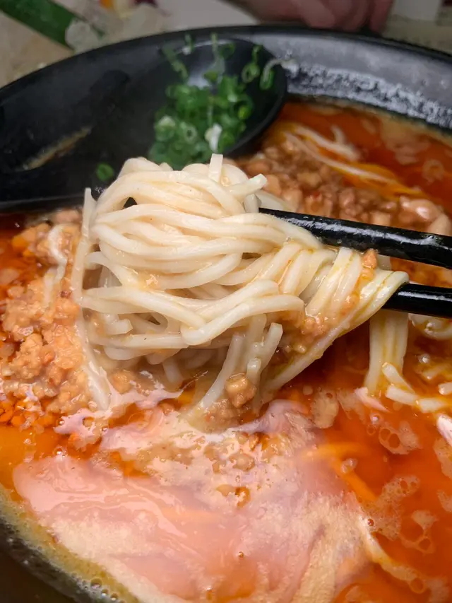 擔擔麵,呢碗麵非常大碗,夠哂我同男朋友一齊食,幼滑嘅麵條,惹味麻辣湯料,伴著豬肉碎、蔥花、花生醬等,再放埋花椒油落去,碗麵一開始唔係好辣,但係愈食愈起勁,每食一啖,都好似有野係條脷上面跳下跳下咁。