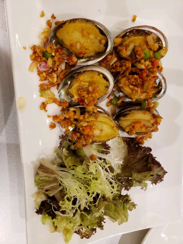 無論如何都要品嚐這間標榜:高端鮮海鮮或是低價平正海鮮餐:雖然地點稍為隔涉,我們點上六位的龍蝦海鮮宴,有十二道菜餚供應,似乎感覺價廉物美,價錢適中,第一道菜式是上湯加拿大龍蝦伊麵(約三斤),上湯汁料不夠濃度而味淡,龍蝦肉少不夠鮮味,而伊麵條分量少而軟柔油多,不夠六人分量,不知其味。第二道是惹味香甜的豉椒爆秒蟶子皇,出來都是細小的蟶子,肉質鮮甜,有辣滋味,有嚼口又彈牙,充滿味蕾,口感不錯,不過不失的新鮮海鮮蟶子。第三道星州胡椒越南肉蟹隻上,肉質很香海鮮味,極肥美,鮮味美味,味道特別香甜滋味,賣相不錯,食得津津有味。第四道菜:蒜蒸日本新鮮元貝,蒜泥充滿粉絲味道,元貝香甜軟滑,煙韌滑膩,好香口,非常美味新鮮的元貝。第五道是:油鹽水南非蝴蝶蚌、鹹味香濃,肉味柔軟而爽口,都是媲美滋味的菜餚。第六道是脆皮乳豬全體,脆嫩濃香,甜味又脆,十分可口。第七道是海底椰螺頭湯,夠分量熱騰騰的豐富清新的湯水,濃烈鮮甜,充滿口味,最好味質感的湯水。八道菜:海鮮椒鹽鮮鮑魚,火喉剛好,不太硬而軟身,濃烈的海水味,滑嫩鮮甜爽口,但是野茶好像不夠新鮮,有些苦澀味道。九道菜有凊蒸沙巴大龍躉,肉質嫩柔可口,魚肉鮮甜,魚分量比較細小,可能是六位用的套餐。十道菜是白灼蝦,普普通通的平價蝦,毫無特色可言,份量較小。十一道菜:酥炸大生蠔,瘦肉汁少的本地生蠔,味道還可以。最後野菌浸鮮蔬,都是強差人意,索然無味,份量極小蔬菜,不夠滿足肚皮。有個黑糖馬拉糕,毫無驚喜,價錢都算公道,整體是菜式分量極小,廚藝普通,有果汁及山楂烏梅汁供應,不過不失的所謂高端海鮮宴!