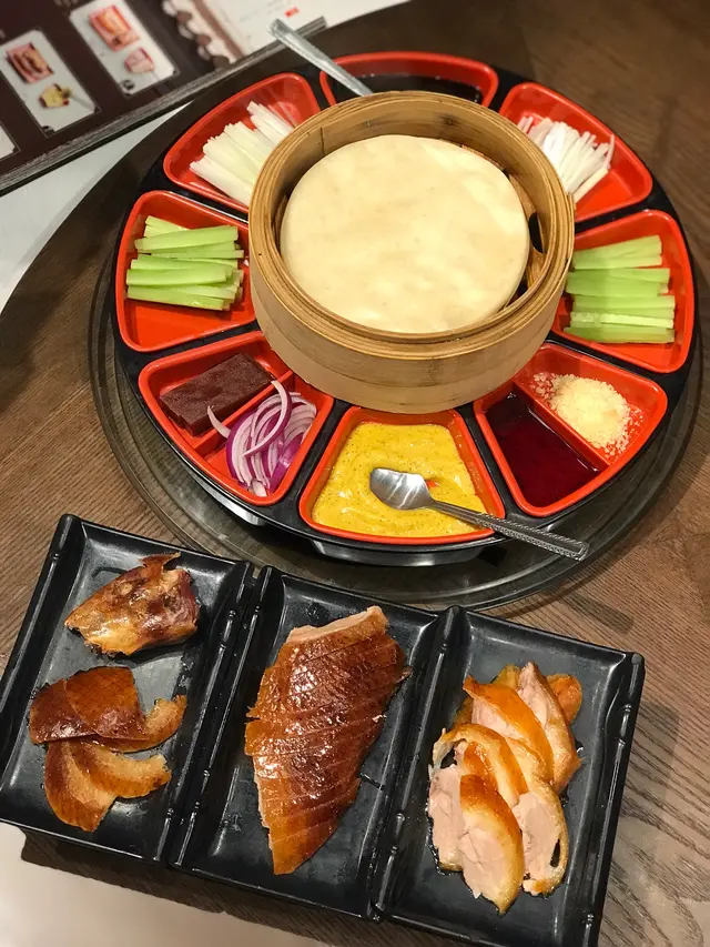 被片皮鴨吸引而黎,呢度嘅烤鴨有分唔同部位,唔同位置建議點唔同嘅醬,最特別嘅係鴨皮點爆炸糖,感覺好得意,不過偏油。另外有鴨胸肉點自製芥末醬,味道ok。最鍾意都係用鴨腿肉點返甜醬,再用皮夾青瓜。