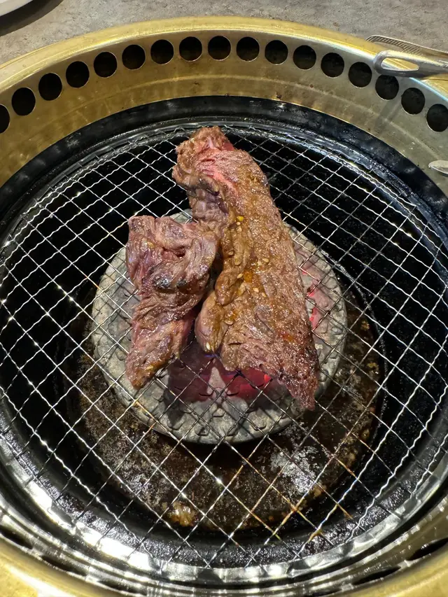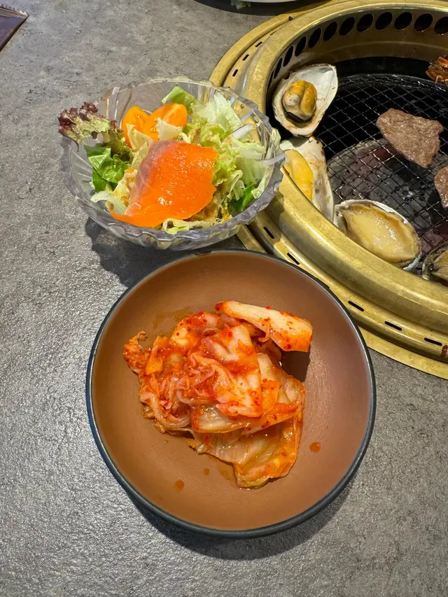 先來牛肉拼盤🥩 每一款都真係各有特色,牛胸腹肉真係勁軟滑,又夠油香;牛肩里油脂分布得平均,好香牛油🧈牛舌又爽又脆,附送煙燻封門柳,都非常有肉味同咬口👍🏻🤤配有燒肉醬汁有三款燒肉汁、鹽燒同埋芥末,唔夠味先加😂
