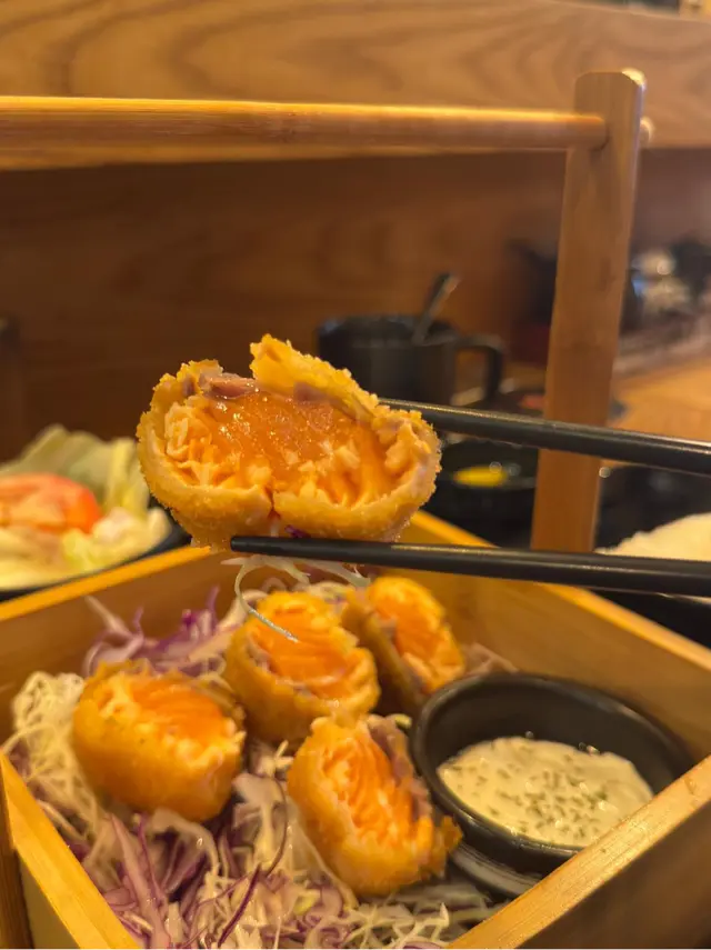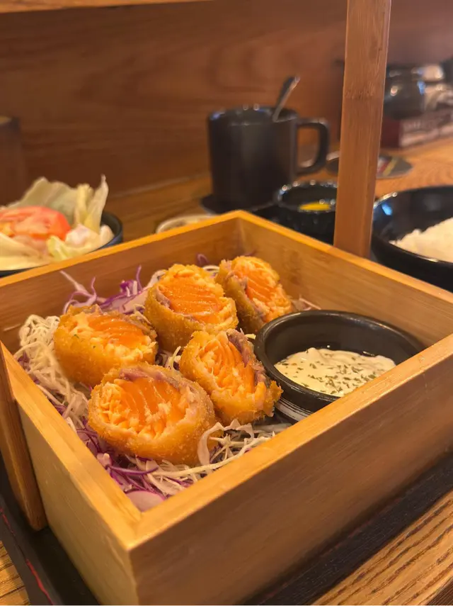 入邊有炸鮭魚刺身定食