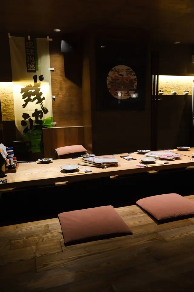 ,配上日本的沖繩元素的海報、設有榻榻米。擁有輕鬆、熱鬧的用餐氛圍。