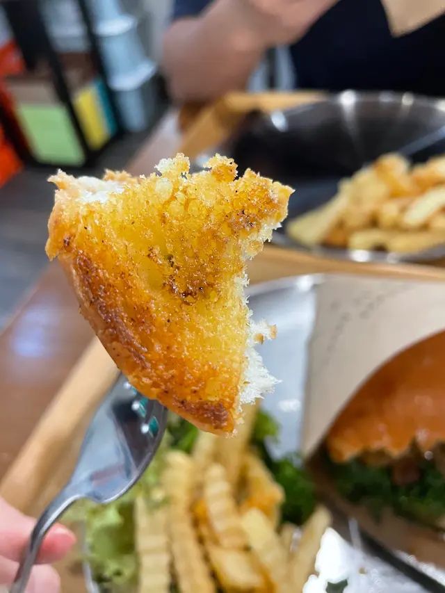會看到包皮煎至香脆 令漢堡包生色不少