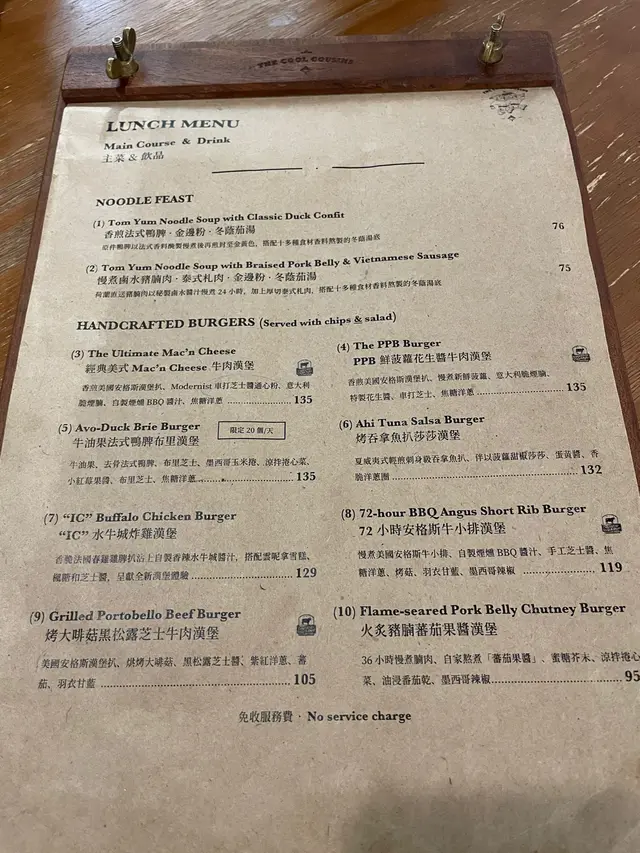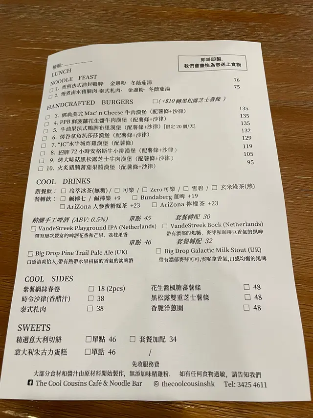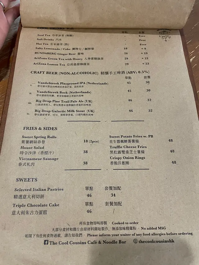 餐牌如下: