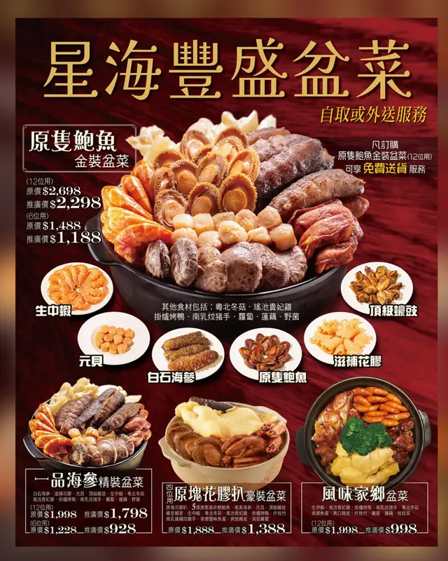 話咁快下個月就中秋節,老best 話腦細叫佢諗埋條team去邊度食飯🤔見early bird 落訂最多減 $1000-$1200 ,或者叫盆菜外賣外(自取都得),輕鬆幫佢搞掂埋呢個社畜聯誼任務!只要有好西食,焗住同腦細高層social 都舒服晒!