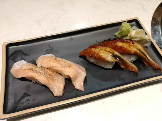 燒三文魚腩壽司 $34 & 火灸鰻魚壽司 $44
