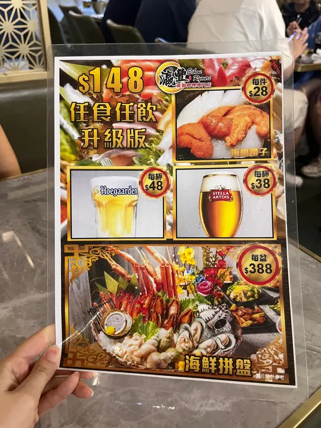 升級豪華海鮮拼盤任食及啤酒任飲: