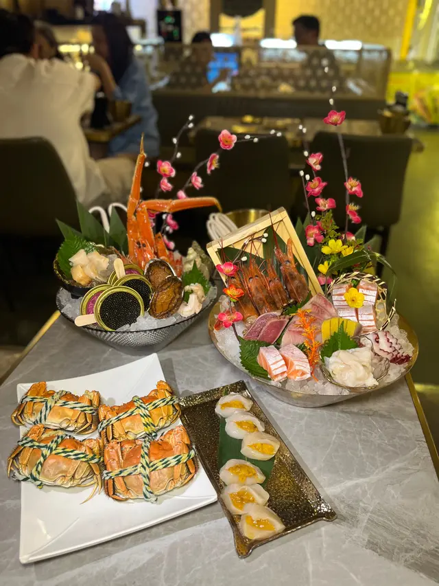 魚子醬/ 長腳蟹/ 大閘蟹/ 象拔蚌刺身/ 海膽帶子