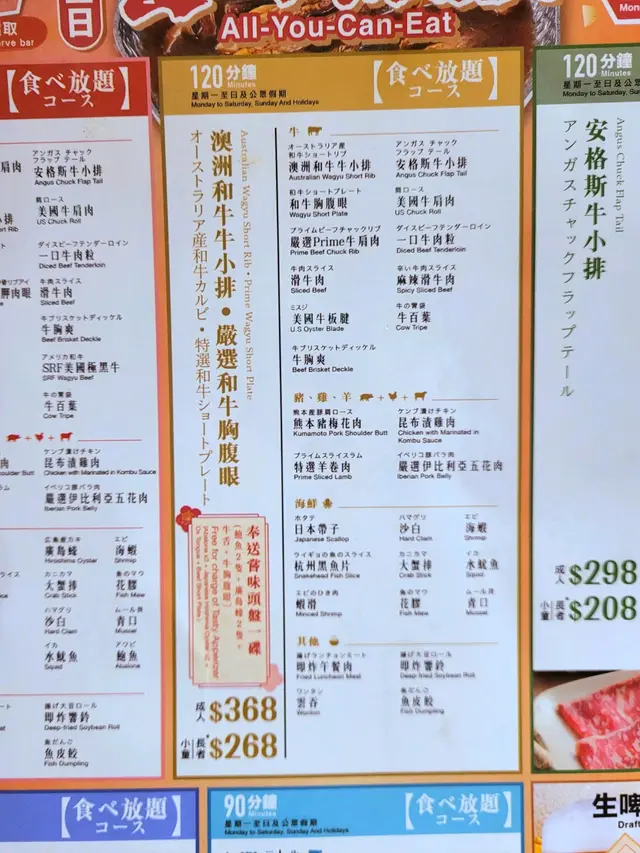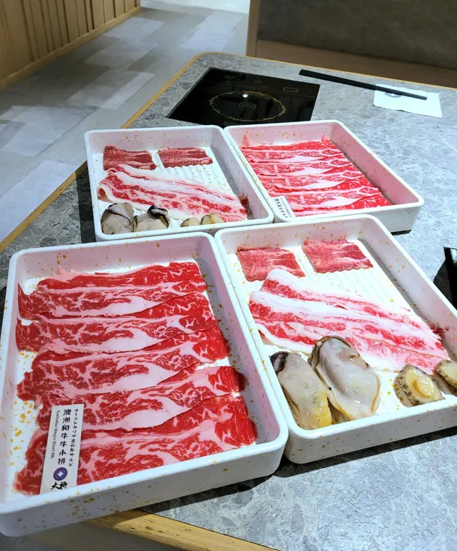 有三款不同牛肉及價錢嘅放題任君選擇,點了澳洲和牛小排放題$(368),另外每人送一客頭盤: 鮑魚、廣島蠔各2隻及牛舌及牛胸腹。