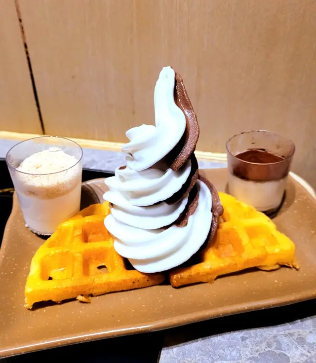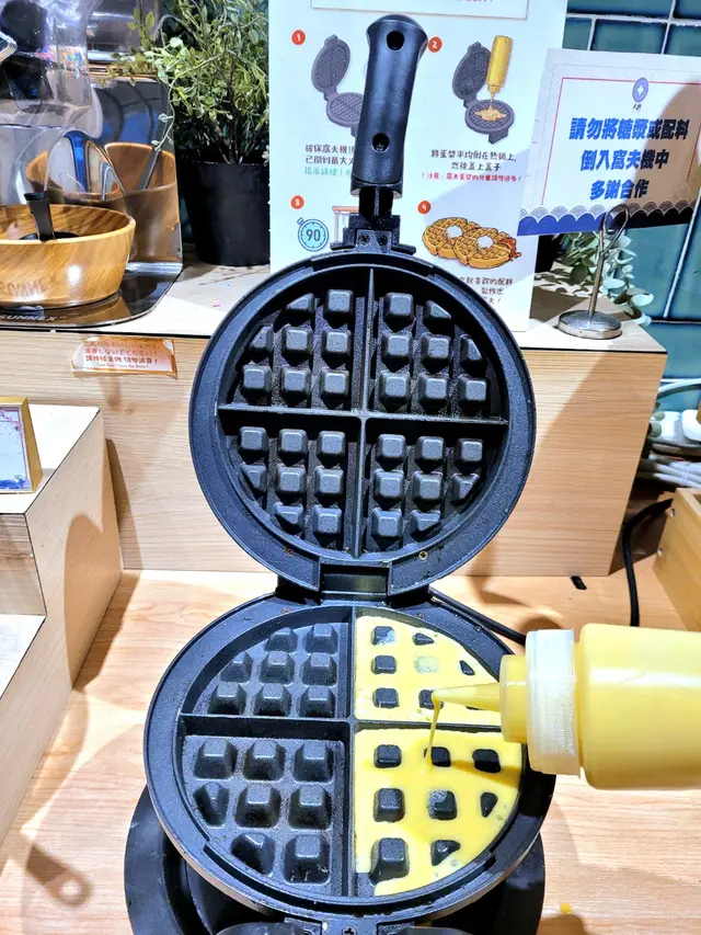 蔬菜、丸類、熟食區、飲品及甜品區都係任飲任食,最驚喜仲可以自製格仔餅,蛋漿已準備好,倒入格仔餅模按指示加熱即可,格仔餅最終成品口感豐富而且脆卜卜