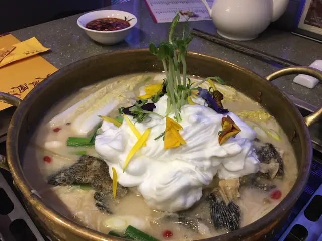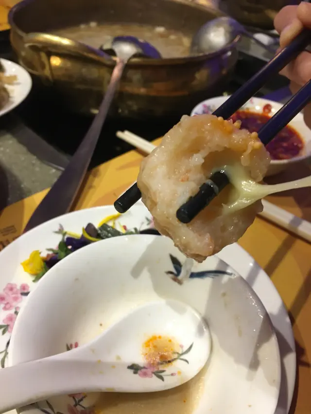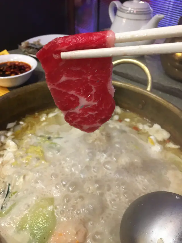 另外佢嘅鍋底都非常特別, 朋友唔食辣, 所以就叫左個雪山飛狐鍋, 即係龍躉魚湯, 個雪山其實即係蛋白, 鍋一到, 店員就提我地飲左個湯先, 白雪雪, 好濃郁嘅魚湯, 再加埋中間嘅蛋白雪山, 口感幾特別.
