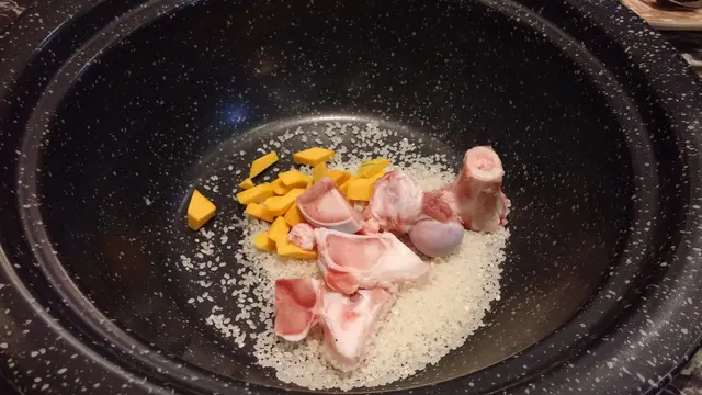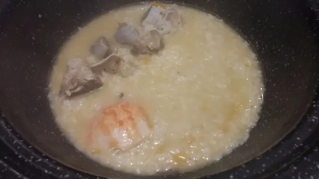 然後,先在蒸氣鍋的底層加入白米﹑南瓜和豬骨一同熬粥,再利用蒸氣的熱力,將上層的海鮮煮熟,讓食客既可品嚐到原汁原味的海鮮,粥底同時亦吸收了海鮮的精華,享受多重滋味。