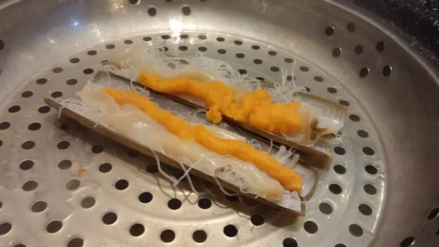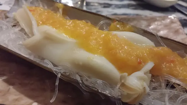 而巨型的蟶子皇,肉厚鮮嫩,清甜爽口,配合帶點椒味的黃金汁,惹味非常~!