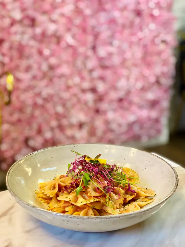鬧市中的花花世界🌸 foooodieLevel 42021-10-2150 views Follow 鬧市中的花花世界🌸 Cafe由門口到入面每一個角落度都放滿色彩繽紛嘅花卉,令人少女心大爆發!香草芝士拿破崙蝴蝶粉($109)蕃茄味濃郁味道好鮮,加上鹹香既煙肉,蝴蝶粉亦煮得好有口感,不錯!香草忌廉什菌意大利飯($86)飯粒 粒粒分明但又唔會過硬,忌廉汁濃稠,比較濃味但略嫌味道有點單調。蝶豆花綠茶($45)打卡一流的漸層飲品,清清地綠茶一杯。玫瑰花釀紅茶($45)玫瑰花香味好岀,味道唔會太假,呢杯甜度高d。The above review is the personal opinion of a user which does not represent OpenRice's point of view.LikeShare鬧市中的花花世界🌸 White Hse. https://s.openrice.com/QrKT0TIT000Report Post Ratings3Taste4Decor4Service4Hygiene3ValueDining MethodDine In