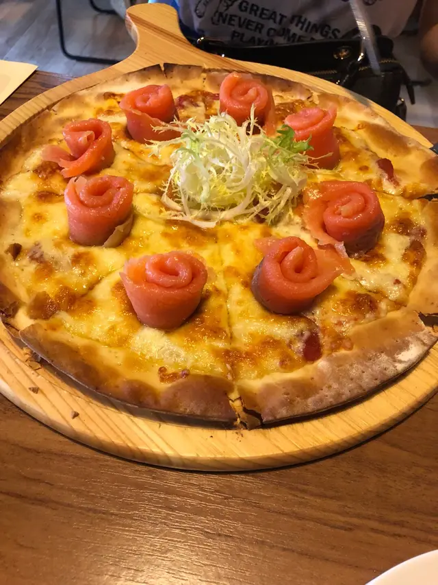 我地搭枱坐左係個面對面既2人位,叫左2份午餐,分別係煙三文魚pizza同三文魚扒配意粉,另多有加到兩份甜品,雞翼,同温泉蛋