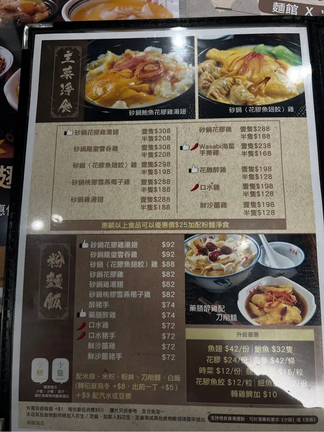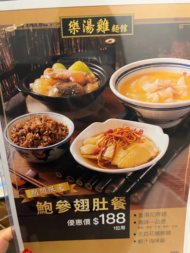 魚翅花膠人人食得起 Mini KeroppiLevel 22023-02-06219 views Follow 今日天氣涼涼地,同事帶我食呢間以雞湯出名的麵店,的確有驚喜。中午未夠1點入鋪頭已經坐滿人,都算幾火。1)花膠雞湯翅($68)飽飽地簡簡單單飲個湯,份量唔算大,口味清淡,但絕對有雞味,花膠三件,魚翅都有細細兩三匙,金華火腿就細細粒,要六十幾蚊嘅價錢嚟講都算係咁。2)砂鍋花膠雞米線($82)上枱已經熱騰騰,天寒地凍食最啱,雞有四至五件,都算幾滑,花膠三至四件,當然唔係矜貴貨色,但大大件已值回票價。午餐價錢中規中矩,但勝在平民價食到魚翅魚翅花膠撈飯響銅鑼灣邊度搵?111砂鍋花膠雞米線$82花膠雞湯翅$68花膠雞湯翅$68花膠雞湯翅$68The above review is the personal opinion of a user which does not represent OpenRice's point of view.LikeShare魚翅花膠人人食得起 樂湯雞麵館 (登龍街) https://s.openrice.com/QrKT0Cy6ZW0Report Post Ratings4Taste3Decor4Service4Hygiene4ValueRecommended Dishes砂鍋花膠雞米線$82花膠雞湯翅$68花膠雞湯翅$68花膠雞湯翅$68Dining MethodDine In