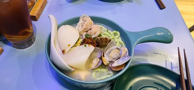 爽彈魚麵,魚麵粗身彈牙,冇魚腥味,木魚湯湯底鮮味,蜆肉鮮甜😋