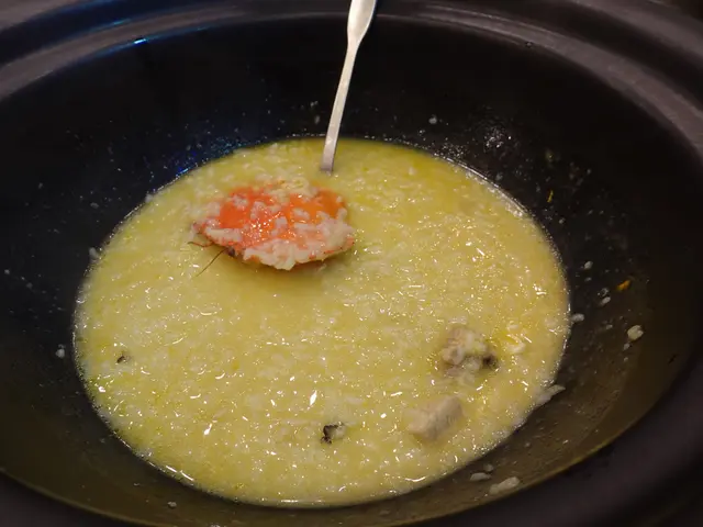 因為有雞的油份 當初的白粥在這時已經變為金黃色