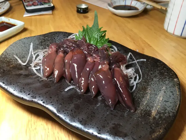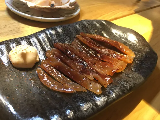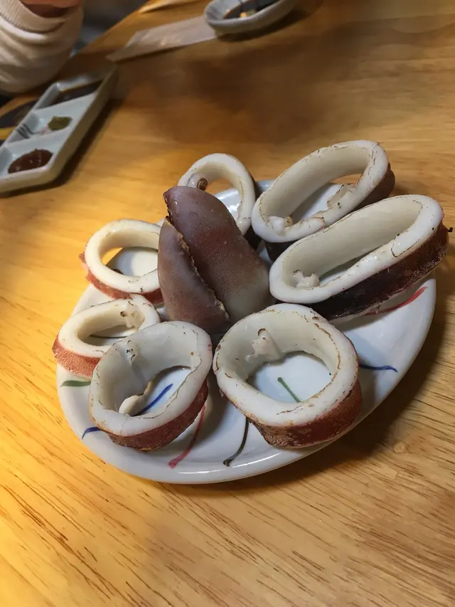 送酒一流的螢光魷魚塩辛,每一隻都是活鮮活鮮的魷魚味。