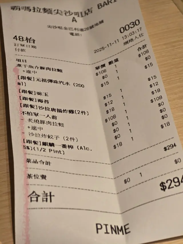 🍖我又另外叫咗一個豚肉拉麵。目的就係想睇吓佢單純豚肉湯底嘅味道,當然系一樣濃厚,而且如果唔鍾意魚味嘅人,去食呢個一樣會覺得頂呱呱。