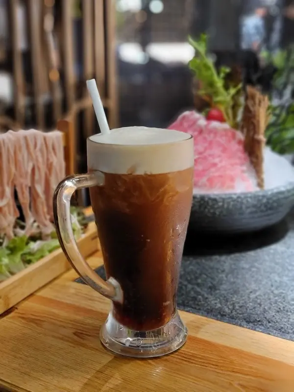 鴛鴦鍋兩款湯底一邊是紅顏花膠雞鍋,另一邊則是台式麻辣鍋,入口可嚐出皆是真材實料,前者用上花膠、雞肉、野米、鮑魚、花菇熬製成的金黃湯底味道濃郁厚實,鮮甜帶黏,滿有膠質。而後者用上紅棗、枸杞、台式特製鴨血、豆腐熬煮而成,味道香醇帶甘,麻辣辛口。