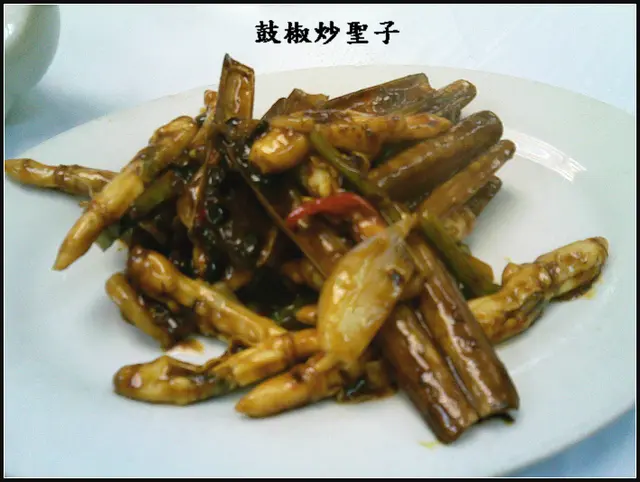 1) 鼓椒炒聖子 ($48) ~ 遠處已有炒豆豉洋葱的香味。 聖子肉鮮味甜, 拌入豉汁, 勁惹味。 不到三分鐘, 兩人已把所有聖子掃光!