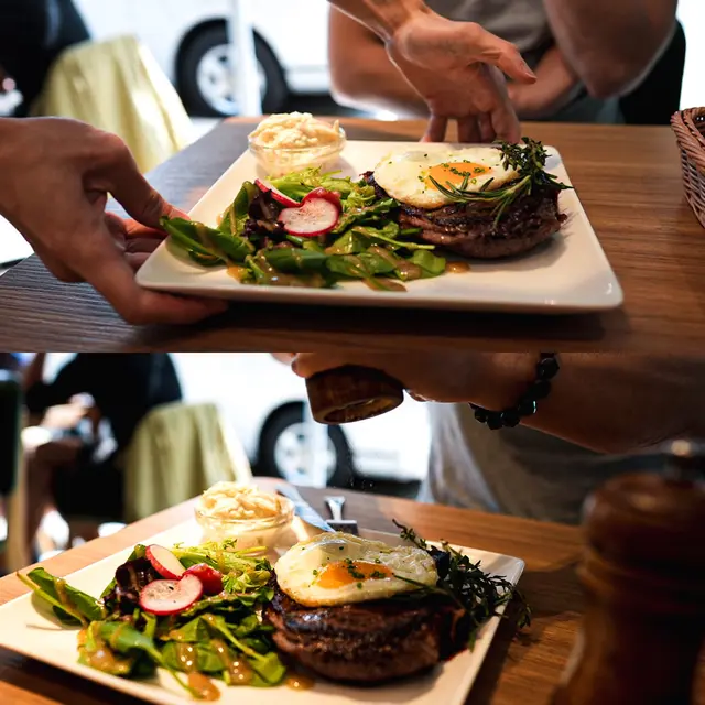 ❄︎ 𝑺𝒕𝒆𝒂𝒌 𝒏 𝑬𝒈𝒈: 下面是medium的ribeye,上面是一隻煎得美美的太陽蛋。順帶一提,牛扒可選擇tenderloin或ribeye!牛扒肉質軟嫩之餘仍保留了一些質感,而且牛味很重,配上香噴噴的太陽蛋,這個組合很棒!