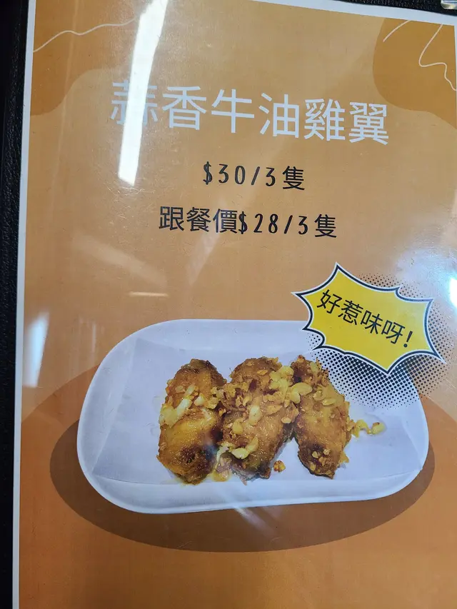 蒜香牛油雞翼一客三隻,墊有牛油紙吸油。熱辣辣,整得皮脆肉嫩,味道剛好,好香蒜味,而唔會太濃,好香口。