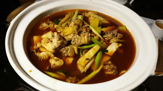 麻辣雞煲 ($288) - 跟有gas爐上枱,上枱後滾起就可以開動,鷄件份量多,鷄肉嫩滑。湯底麻辣中更帶有好香嘅香料味,味道更有層次。
