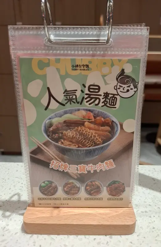 以QR code落單,餐牌內有人氣湯麵系列嘅招牌三寶牛肉麵、半筋半肉紅燒牛肉麵、麻辣三寶牛肉麵、麻辣半筋半肉麵,以及其他多款湯麵、小食、手搖茶等等,樣樣都吸引。