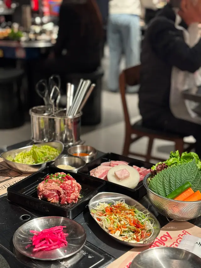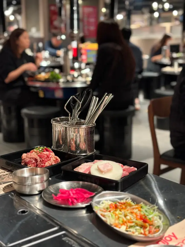 黑白大廚評判開既燒肉店 EvelynwyyLevel 42024-12-225K 浏览 关注 呢間黑白大廚評判白鍾元既新餐廳剛剛開幕,我同朋友就已經衝左入去食!哈哈哈!超級多人排隊!不會好彩裡面好大,等左大概1個鐘就入座。剛剛開幕服務有啲混亂,連小菜都冇上,但係不得不說食物味道總體不錯!1我地叫左燒豬肉同牛肉,肉質新鮮,味道醃製得剛剛好,用生菜包住食好味!1另外我地仲叫左雞蛋羹同韓國粉絲,雞蛋羹偏鹹,粉絲就幾香麻油味,整體中規中矩啦!埋單大概2百幾一個人,都算合理!個人覺得如果唔使排隊的話可以一試!以上食记乃用户个人意见 , 并不代表OpenRice之观点。赞好分享黑白大廚評判開既燒肉店 SAEMAEUL https://s.openrice.com/QrKT02ljO00检举 张贴 评分3味道3环境1服务3卫生3抵食用餐途径Dine In