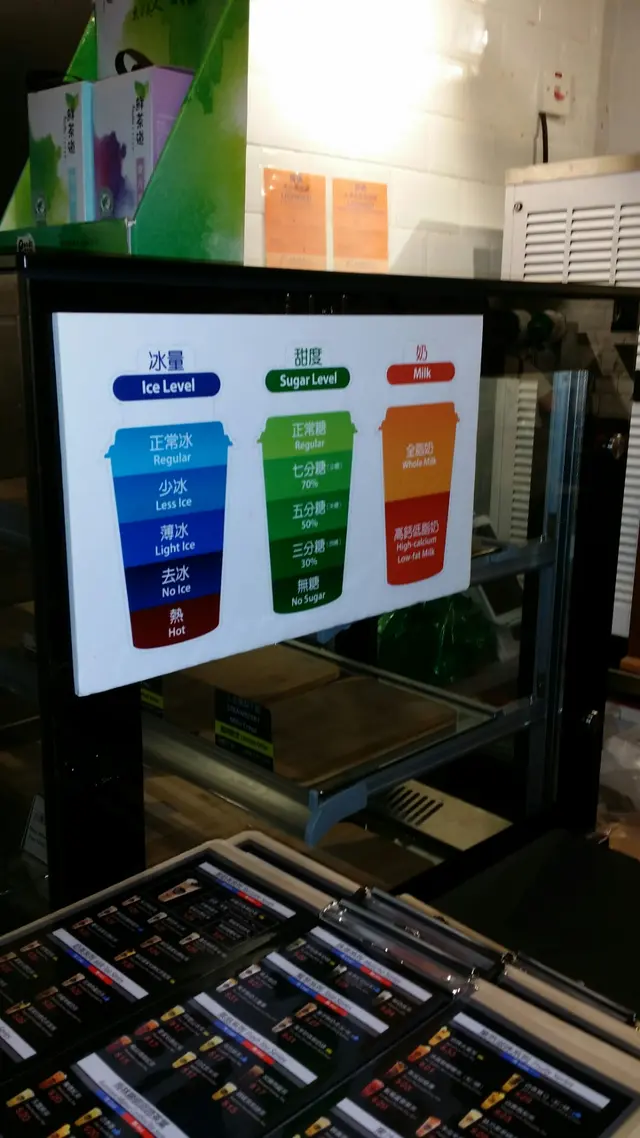另一方面,我發現「鮮茶道」原來容許光顧飲品的客人,自由決定「抹茶」或者「黑糖奶茶」的「冰量」、「甜度」跟「奶度」等等的味道比例,即是類似「少甜」、「走甜」等等的飲品濃度調校服務。