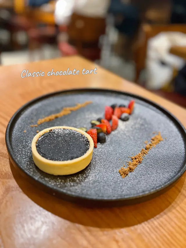 擺盤靚,撻皮鬆脆,絲滑朱古力,甜度適中,仲有士多啤梨同藍莓伴碟!