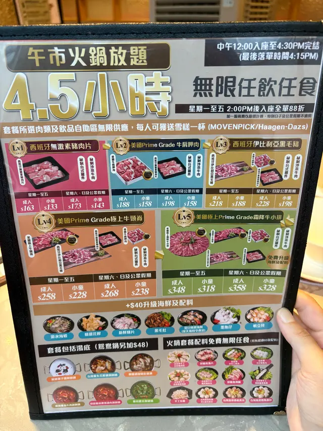 黑雨下的打邊爐🍲 Janette030Level 42025-08-12257 views Follow 呢間打邊爐最啱同朋友一齊食,因為唔限時😆,星期六下午12點可以食到4:30pm,不過我哋食到3點幾已經飽到要離開🤣7午餐真係好抵食~我哋揀咗$198第二級: 美國Prime Grade 牛肩胛肉,另外加$40升級有海鮮,鴛鴦鍋就加$48。咁啱撞到黑雨,餐廳人唔多,上菜速度好快又坐得舒服😆湯底方面揀咗日本壽喜燒鍋和藥膳胡椒豬肚雞鍋,兩個湯底都好濃郁入味😋是日精選海鮮嘅蜆大大粒好鮮甜,仲可以揀海蝦、花膠、帆立貝、墨魚仔等等,絕對係值得升級!飲品方面有幾款自家制茶,其中黑糖冬瓜檸檬茶甜度剛剛好,又比較少見,幾特別。甜品每人限選一份,movenpick、dreyer’s、HaagenDazs都有得揀。The above review is the personal opinion of a user which does not represent OpenRice's point of view.LikeShare黑雨下的打邊爐🍲 鍋霸吃到飽台式養生火鍋 (莊士倫敦廣場) https://s.openrice.com/QrKT0IEXT00Report Post Ratings5Taste5Decor5Service5Hygiene5ValueDining MethodDine In