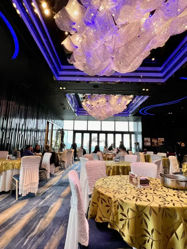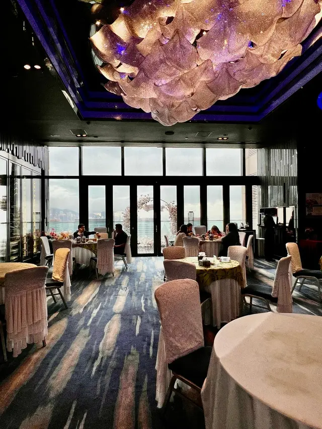 一入到去個場好大,兩邊有超大落地玻璃我望到270度海景,還可出露台觀賞,我估夜晚可欣賞幻彩耀香江和大時大節的煙花,好適合婚宴和公司節春茗。