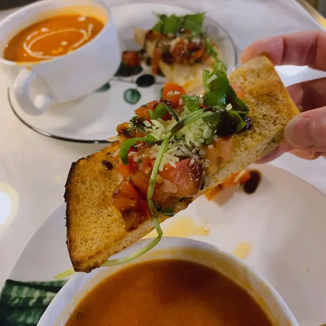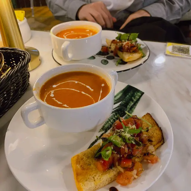 點咗蝦蝦霸霸牛扒二人套餐 先嚟餐湯~蕃茄海鮮夠濃夠香. 酸酸地仲有好濃海鮮香味,配上蕃茄沙律多士 配上橄欖油 好清新開胃😎😎