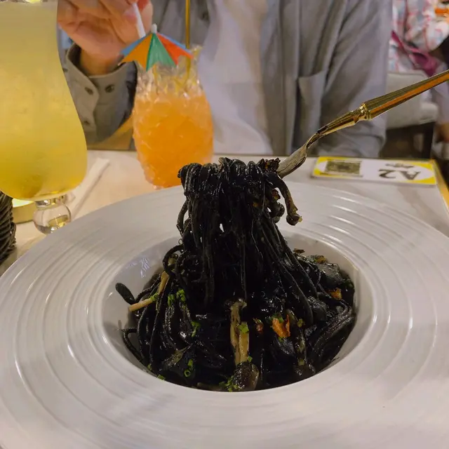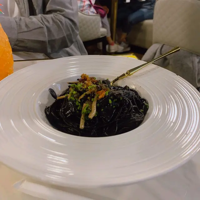 好特別!鵝油配上墨汁 每一條意粉都掛滿墨汁 仲有菇做配菜 好香!😋😋