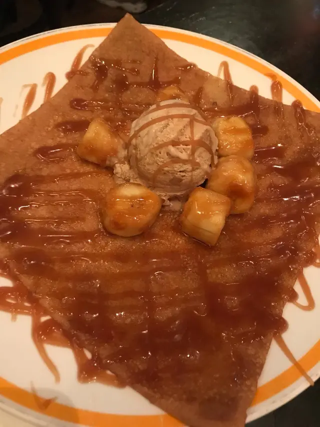 Brûlée嗎?定睛一看,眼前的薄餅充滿了絲絲焦糖,伴隨香蕉塊及焦糖雪糕。焦糖的味道香甜,與較清淡的香蕉和薄餅的配搭恰到好處,能夠互補長短,還有雪糕的「冰火加乘」,簡直是苦盡甘來!