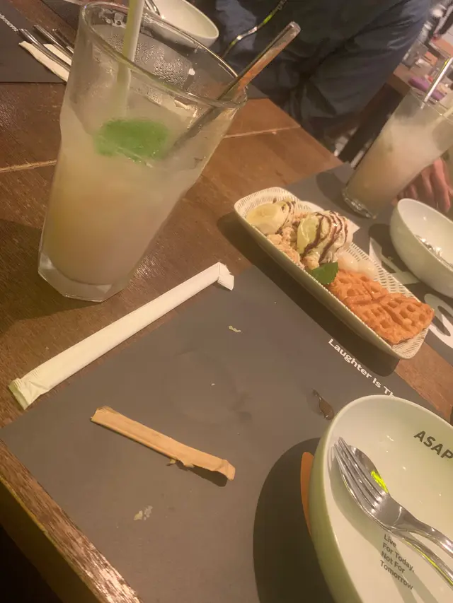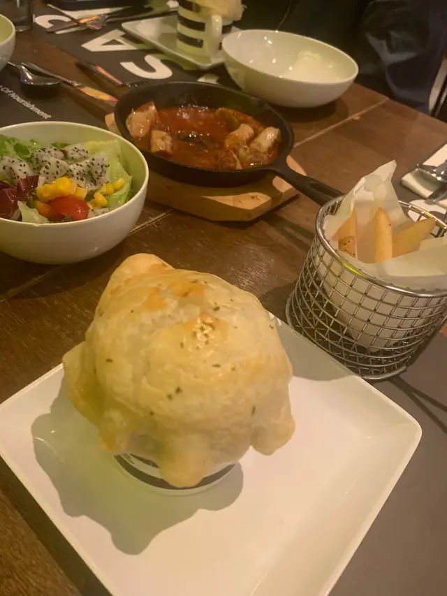 10 月13 日的晚餐 Cathy123123Level 42024-10-142K 瀏覽 關注 今晚又嚟食晚飯,見到新Menu 所以叫左d新嘢試吓。炭燒封門柳,鐵板切片上,嫩嫩的,好香烤味,份量不多,個餐配沙律及白飯,若然可改配意粉或薯條就更佳。番茄青口意粉,汁醬吾夠,味道同青口吾太夾。烤斧頭豬扒及烤肉腸,之前食過系夾埋一齊一款的價錢,現在是拆開兩款價錢的,可能見受歡迎所以提價,斧頭豬扒尤其出色,豬扒慢煮過所以好juicy ,烤肉腸仍然大大條,啖啖肉。加配酥皮湯及提子/士多啤梨梳打,仲有薯條。甜品叫左兩客,將牛角包夾成窩夫,小丸子、雪糕和士多啤梨及香蕉併在一起,幾好。11以上食記乃用戶個人意見,並不代表OpenRice之觀點。讚好分享10 月13 日的晚餐 ASAP As Simple As Possible https://s.openrice.com/QrKT0CLvN00檢舉 張貼 評分3味道3環境3服務3衛生3CP值用餐日期2024-10-13用餐方式Dine In人均消費$120 (Dinner)