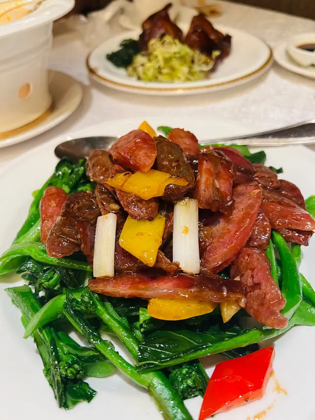 用咗三款唔同嘅臘味,有臘腸、潤腸、同埋臘肉,炒得好香,芥蘭爽口,臘味鹹香同菜嘅清甜融合得幾好。