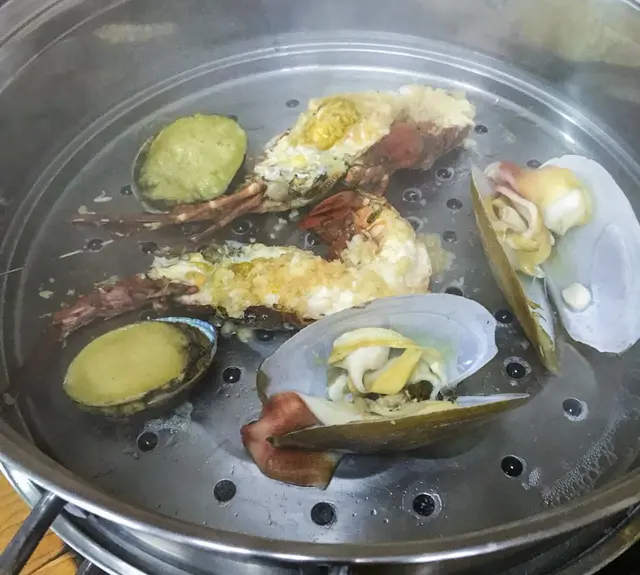 雖然人手不太夠,但都見店員快快手手,其實呢個價位食到先用蒸氣鍋蒸熟食物,再用粥底打邊爐都已經係性價比高了!幸好有店員告知我們每款食物蒸多少分鐘,所以蒸出來的食物,時間蒸得準確,又夠火喉,就能吃出每樣海鮮同食物的鮮味。