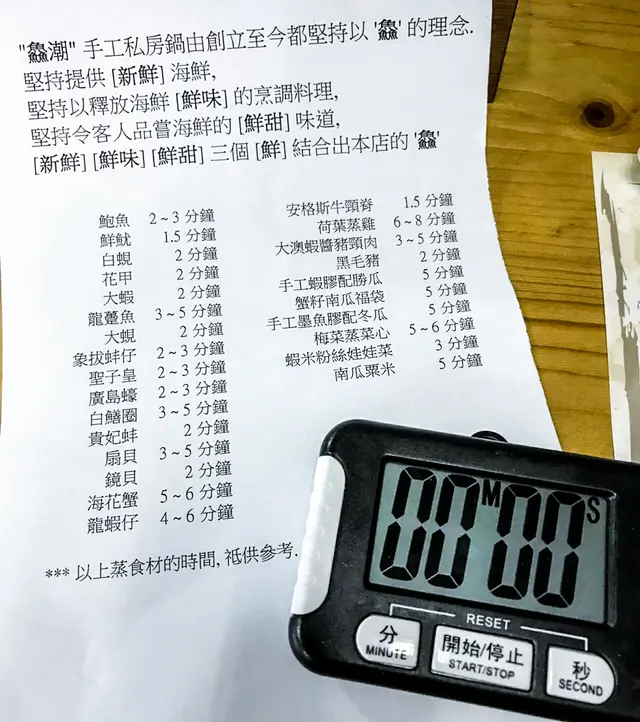 首先最上層當然係最重要既海鮮,順帶一提每一種食材完熟既時間都有所不同,食之前睇一睇紙仔上面既完熟時間,但上菜個陣員工都會一步一步咁都會教你用timer計時。就唔洗怕過熟喔!