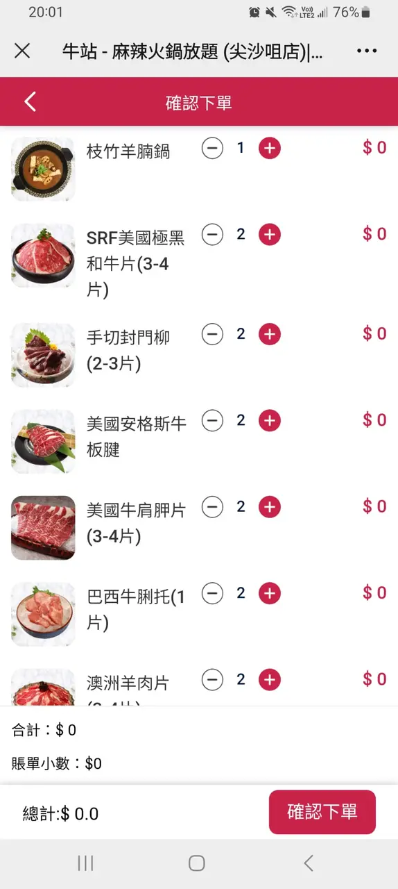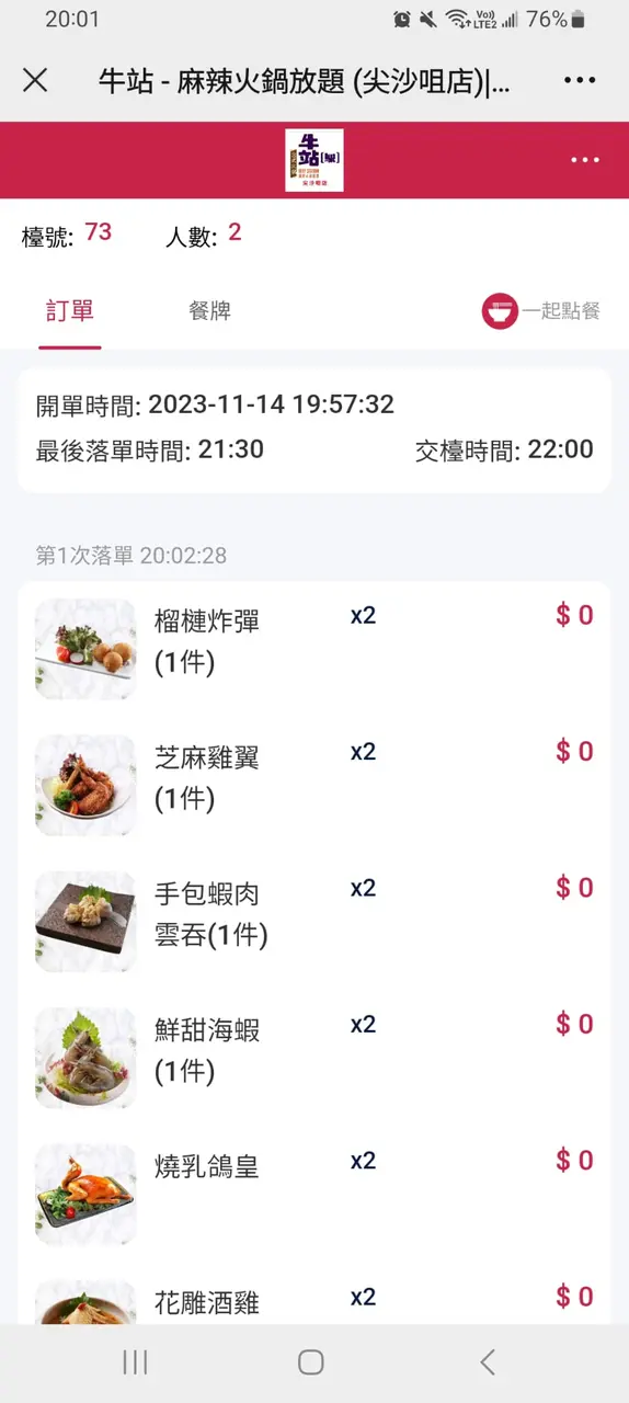 我用QR點的鮮蝦,牛肉,羊肉,乳鴿