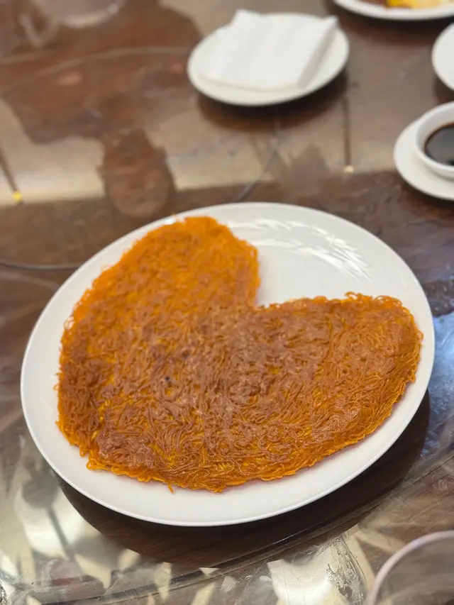 😍 還有膏蟹肉餅 ($398),A級蟹膏,蟹肉鮮甜,口感獨特。🦀✨ 最後,還有老闆親自送上的心型潮式糖醋麵 ($192),甜品更是讓我們的聚餐畫上完美的句號!❤️🍰