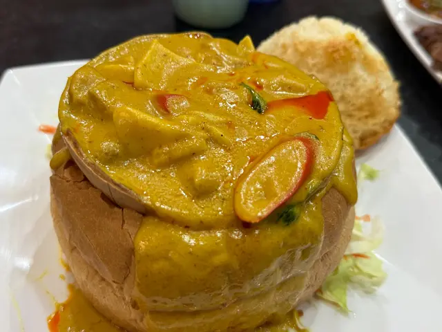 • 必食大圓法包椰皇黃咖喱雞,黃咖喱不辣,甜甜地,而且很香椰子味,配上外脆內軟法包蘸來食,十分開胃,最特別係咖喱有椰肉,口感不錯。