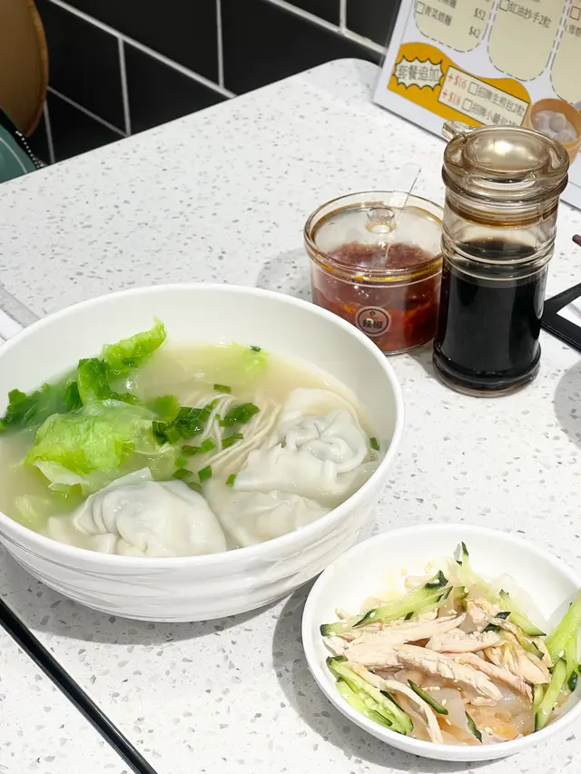 🤍菜肉雲吞湯麵+春捲2條 $48 忌廉$3