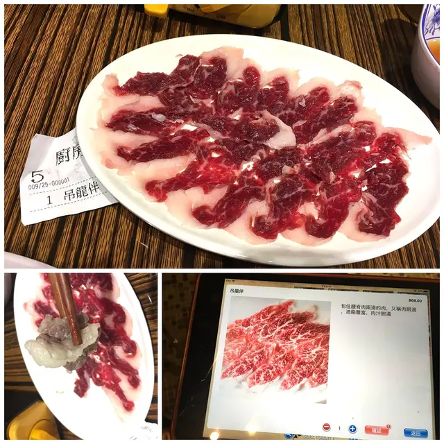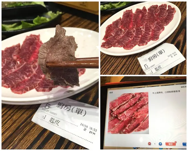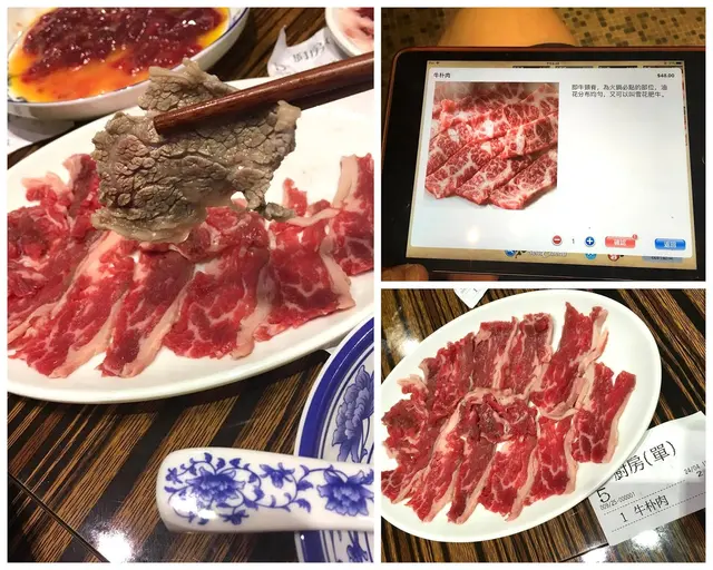然後是點上了牛朴肉, ipad上的賣相比實物吸引, 但確實油花分佈得平均, 甘甘香香肥嫩細滑的又不失牛味, 是平實穩陣之選!