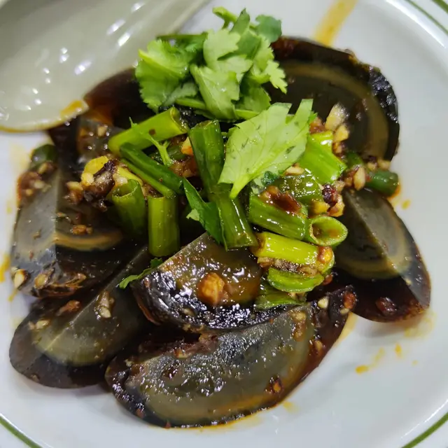 涼拌皮蛋:皮蛋的滑嫩與醬汁的酸辣完美結合,搭配新鮮的蔥花和香菜,讓這道小食的口感更加豐富!👏🏻👏🏻👏🏻