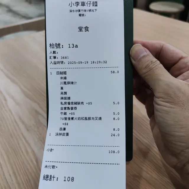 食物推介:四送麵 $58,70度慢煮火焰和風豚肉叉燒 +$8,私房慢燉豬腩肉 +$5,牛雜 +$5,自家製雲吞 +$0,涼拌皮蛋 $24