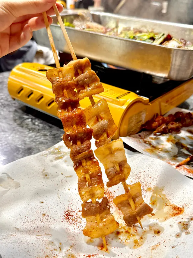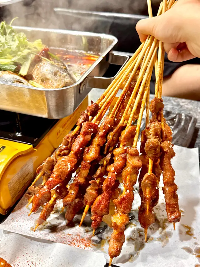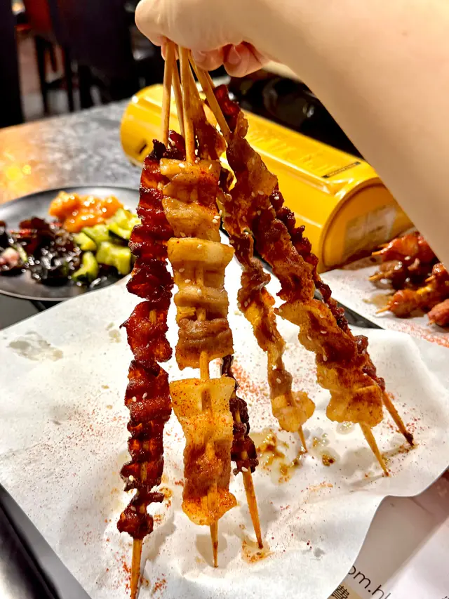 串燒都有7款串,有牛肉串、羊肉串、牛油小串、燒雞皮、五花腩串、燒雞腎、炭燒雞腿肉,超豐富‼️特別推薦燒雞皮同五花腩串,燒雞皮燒到脆卜卜,五花腩肥而不膩,可以食到好多串~